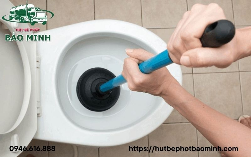 Bước 4: Sau đó xả nước thật nhiều để cuốn trôi tất cả dị vật là nguyên nhân chính gây nên tắc nghẽn xuống hầm cầu.